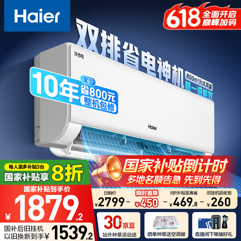 第三款:海尔净省电Plus 1.5匹新一级能效挂机