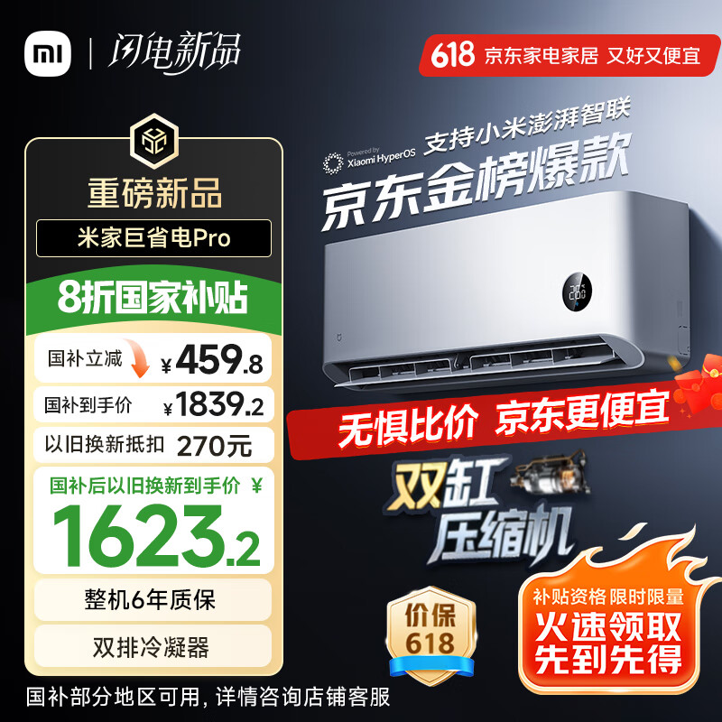 第七款:小米巨省电Pro 1.5匹新一级能效挂机