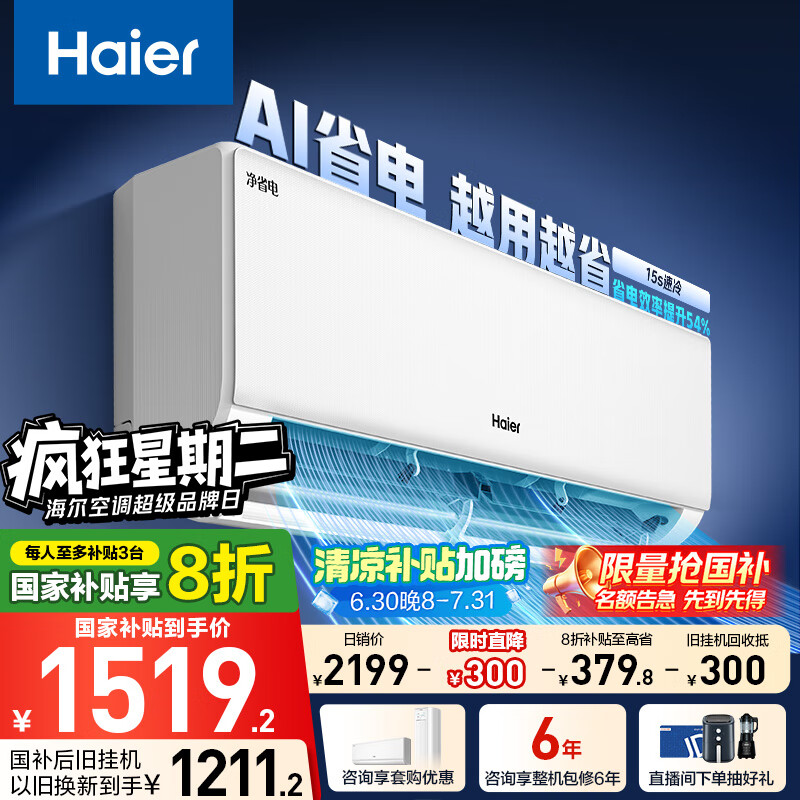 推荐入手:海尔自清洁1匹壁挂空调 KFR-26GW/E1-1